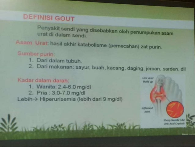 Asam urat wikipedia bahasa indonesia, ensiklopedia bebas. Penyakit asam urat. Penyakit asam urat merupakan akibat dari konsumsi zat purin secara berlebihan. Purin diolah tubuh menjadi asam urat, tetapi jika kadar asam urat berlebih, ginjal tidak mampu mengeluarkan sehingga kristal asam urat menumpuk di persendian. Akibatnya sendi terasa nyeri, bengkak dan meradang. 06_245proses menua stres oksidatif dan peran antioksi. 06_245proses menua stres oksidatif dan peran antioksi download as pdf file (.Pdf), text file (.Txt) or read online. Download driver printer dan scanner canon pixma mp287. Ramuan tradisional untuk obat asam urat adalah obat yang banyak dicari oleh wanita, dan pria yang berumur di atas 30 tahun, karena banyak yang terkena penyakit asam urat. Bahkan sekarang di bawah umur 30 tahun sudah terkena asam urat akut. Jika penyakit sudah parah akan mengakibatkan persendian tidak bisa bergerak. Tetapi anda tidak usah khawatir, karena sekarang sudah muncul obat untuk asam. 8 obat tradisional asam urat dan rematik paling ampuh. Obat tradisional asam urat daun seledri. Obat asam urat dari daun seledri bukan hanya sebagai bahan pelengkap pada masakan tetapi ada khasiat lain yaitu bisa dimanfaatkan sebagai obat asam urat alami. Kandungan daun seledri adalah klorin, inositol, asam lemak esensial, asam folat, sulfur, zeng, vit b1 dan juga vitamin a. Hyperuricemia wikipedia. Hyperuricemia is an abnormally high level of uric acid in the blood. In the ph conditions of body fluid, uric acid exists largely as urate, the ion form. In the ph conditions of body fluid, uric acid exists largely as urate, the ion form. Asam urat in english dimasoutea. Tidak banyak orang yang tahu mengenai asam urat, berikut akan kita bahas tentang asam urat. Yang dimaksud dengan asam urat adalah sisa metabolisme berupa zat purin yang berasal dari makanan yang kita komsumsi, dan juga merupakan efek samping dari pemecahan sel di dalam darah. Penyebab penyakit asam urat alodokter. Untuk mengurai zat purin, tubuh akan secara alami menghasilkan asam urat. Sebagian besar asam urat dibuang melalui urine, dan sebagian lainnya dibuang melalui feses. Pada penderita penyakit asam urat, kadar asam urat dalam tubuh melebihi batas normal. Kondisi ini bisa terjadi bila tubuh menghasilkan terlalu banyak asam urat, atau tubuh sulit.